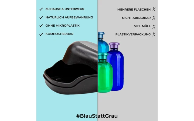 Die Seifenbox ist superleicht, natürlich, vegan, recycelbar und eignet sich perfekt zur Aufbewahrung von festen Shampoos und Seifen. Ohne Deckel kann sie auch als Seifenunterlage in Dusche, Bad und Küche verwendet werden. Die nachhaltige Alternative für Reisen, Camping und für zu Hause.