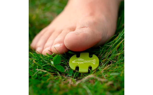 Innovativ und natürlich in der Schweiz hergestellt, bieten sie gegenüber herkömmlichen Heringen aus Metall deutliche Vorteile: Sie sind ultraleicht und aufgrund ihres flachen Profils besonders fußfreundlich. Ihre spitz zulaufende Form ermöglicht ein einfaches Einschlagen, während ein x-förmiger Querschnitt mit Sägezahnprofil für sicheren Halt in unterschiedlichsten Böden sorgt. Der flache Kopf komprimiert den Untergrund und maximiert die Haltekraft. Einkerbungen halten die Zeltleinen zuverlässig am Platz und sorgen für beste Verankerung. Da SwissPiranha-Zeltheringe im 90°-Winkel komplett im Boden versenkt werden, sinkt das Verletzungsrisiko gegen null und es gibt keine scharfen Kanten, die das Zeltgewebe beschädigen. Freilich können ausgediente GreenShark-Heringe wieder recycelt werden – sie sind sogar biologisch abbaubar und kompostierbar!